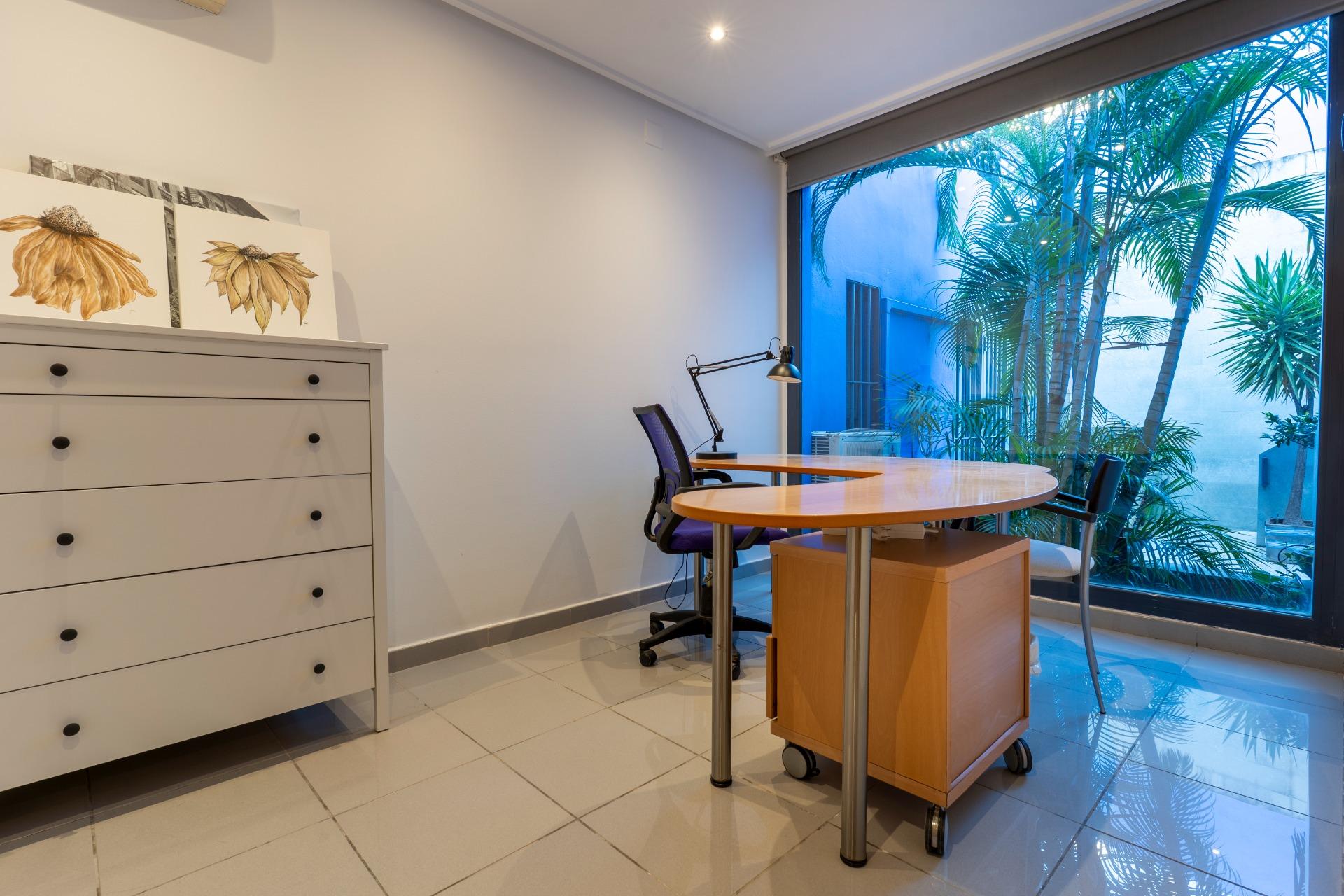 En la planta baja te espera un despacho luminoso, ideal para teletrabajar en calma, estudiar o crear tu propio rincón profesional, y una sala multiusos que se abre a un patio con barbacoa.